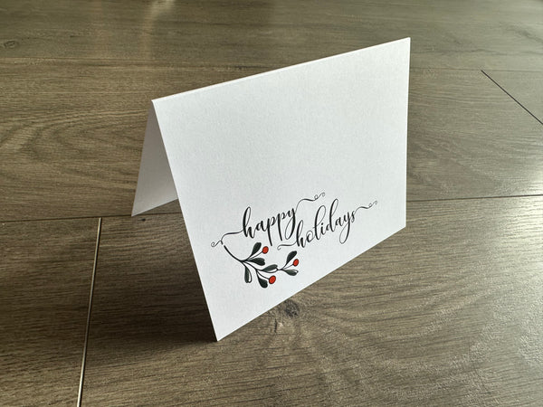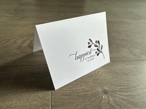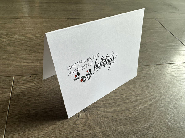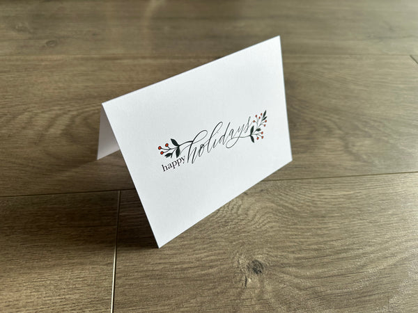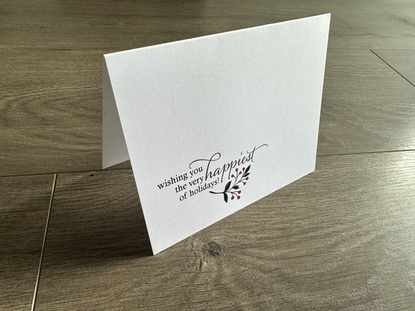 Wish those on your Christmas card list "happy holidays" this season... a perfect set to accommodate anyone on your list, from your family to neighbors to your colleagues. General enough in message but designed to make a warm impression, there's ample space on the inside of the card to include your own personal message.